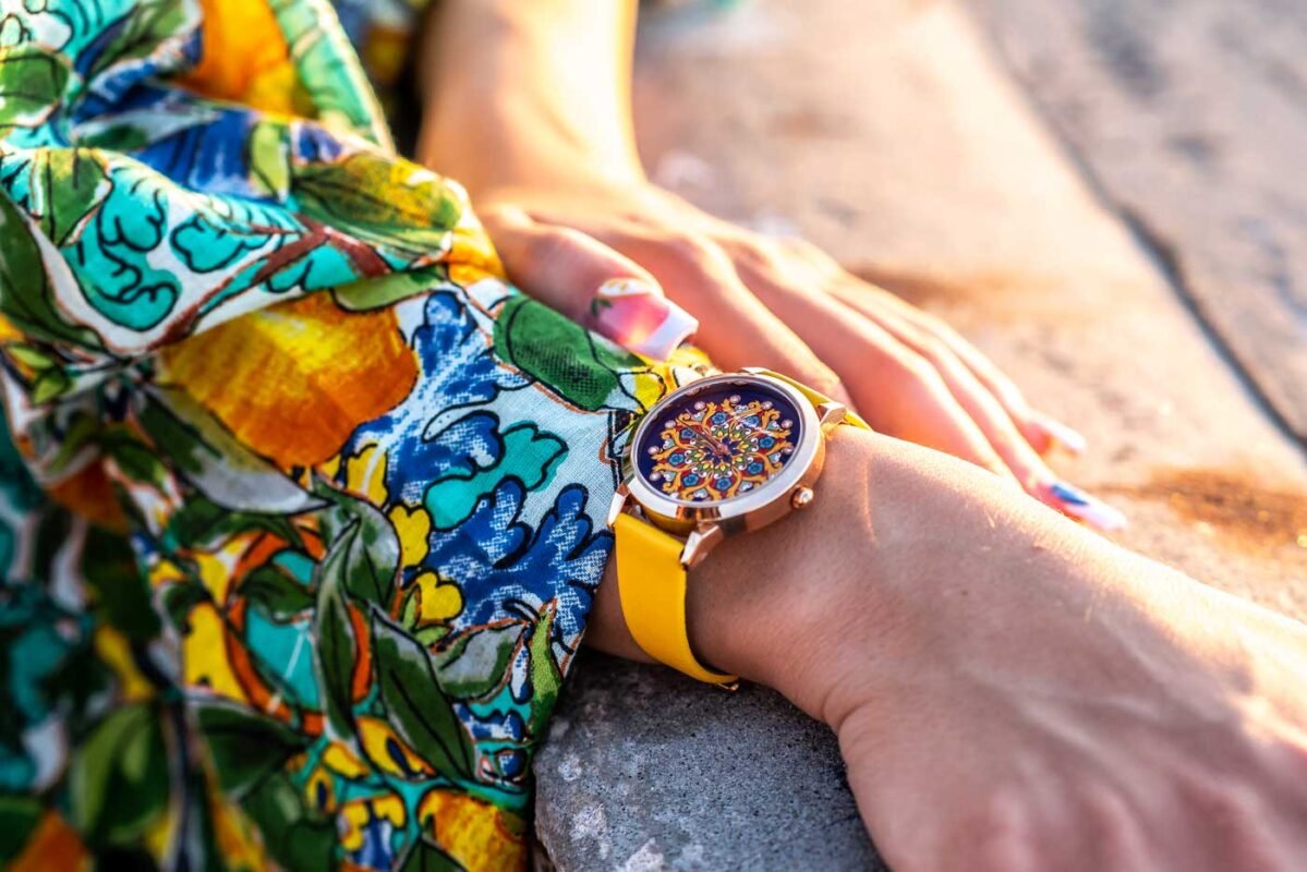 L’orologio siciliano “Incendio d’Amore” è un gioiello da polso che racchiude l’essenza cromatica e culturale della Sicilia. Questo segnatempo non è solo un accessorio, ma un vero e proprio tributo all’arte barocca e al calore del Mediterraneo.